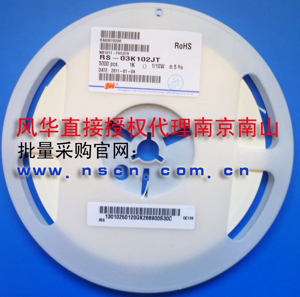 風華高科(FH)代理商南京南山半導體有限公司代理供應風華高科(FH)常規貼片電阻全系列產品。風華貼片電阻規格型號RS-03K102JT是阻值1KRR0402封裝J(5%)精度的常規型號。南京南山半導體在南京總部和深圳備有大量現貨庫存,歡迎撥打風華代理南京南山全國咨詢服務電話或咨詢在線客服。