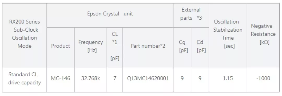 瑞薩RX200系列,對愛普生晶體選擇指南