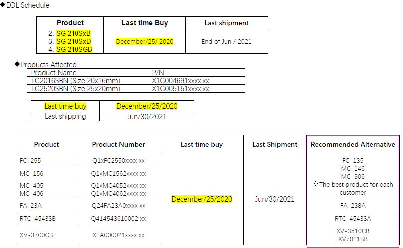 關于愛普生晶振部分即將停產老型號及替換型號的通知