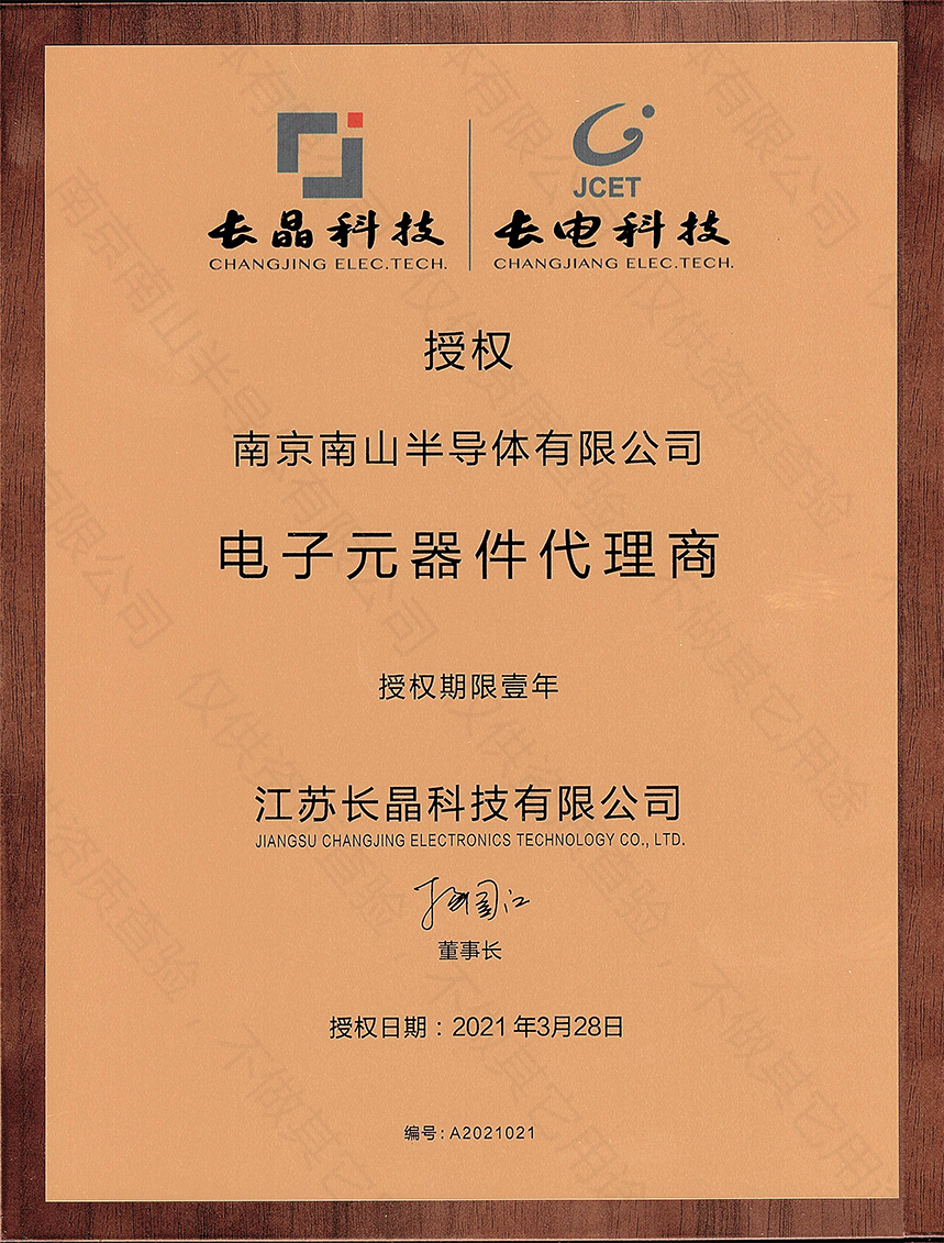 2021年,南京南山半導體有限公司已和長晶科技續約,成為長晶科技代理商,證書編號:A2021021。其實我們南山電子已經是多年長晶代理商,隨著長晶科技總部在南京江北新區的落成,南山電子在交期上又有了新的優勢,其實無論是叫長晶科技代理商還是長電科技代理商都不重要,重要的是為客戶提供的服務和解決方案,有了這篇文章,大家可以放心選型,歡迎各位新老顧客來電垂詢,或者直接到我們某寶店——南山E店直接購買。