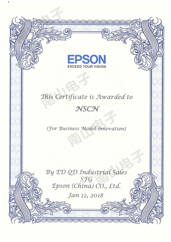 為此,愛普生在2018年1月12日向南山電子授予商業模式創新獎,并頒發了證書。
