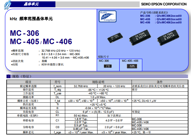 MC-406規格,MC-406無源晶振,MC-406