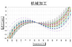 2.0×1.6 mm規格的AT型晶體(26 MHz)的頻率溫度特性