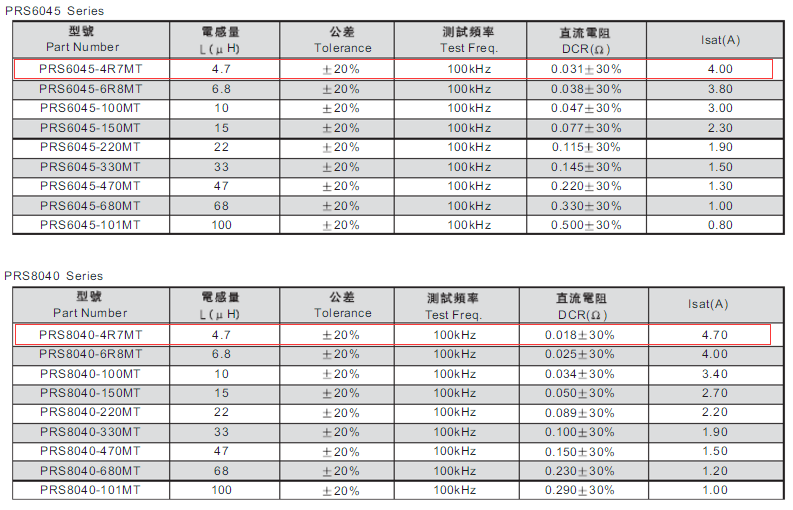 最近4.7uh電感很熱門,特別是4.7uh貼片功率電感,在我們南山電子功率電感銷售過程中,特別是風華高科的4.7uh貼片功率電感 PRS8040-4R7MT 最近很多客戶要貨,有的客戶急需的等不及調貨時間,在規格參數允許的情況下,就選用其他尺寸規格的4.7uh貼片功率電感,就在上星期,我們一位老顧客,也是一個生產終端公司的采購,就鬧出了一個讓人哭笑不得的笑話:本身他們一直用4.7uh電感 PRS8040-4R7MT 本身他們一般每月拿貨大約100K左右,我們跟單也一般都備貨這么多,但是上星期忽然要180K左右4.7uh貼片功率電感,我們就需要調貨大約幾天,可是他們等不及,我們給出的解決方案就是他們技術確認下看能否選擇其他尺寸的4.7uh貼片功率電感,當然還是風華PRS系列的,他們技術確認后跟我們說用 6x6的4.7uh貼片功率電感——PRS6045-4R7MT,6045有貨的,所以我們剩下的80K就給他們發過去了,這周告訴我們,搞錯了不能用, 全部發回來重新換等交期,原來是他們采購看技術也忙,匆忙問了下技術什么尺寸也可以,也沒細查規格書就直接決定了,收到貨技術才告訴他不能用,那么南山電子幫你詳細分析下 為何同樣是 4.7uh貼片功率電感,就不能隨便替換,也給大家選型過程中提個醒: