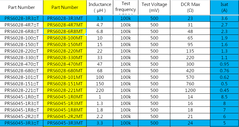 3.3uh電感是比較熱門的電感之一,而3.3uh功率電感更市場上最常規的功率電感之一。很多移動電源里都要用到3.3uh功率電感。我們南山半導體盤點發現近期我們出貨比較多的是風華高科的3.3uh電感——PRS6045-3R3MT。說到3.3uh功率電感讓我前幾天一個客戶換貨的事:我們江蘇的一位客戶,一直都用PRS6045-3R3MT,也是因為我們3.3uh功率電感最近出貨較多,他們又上周在已經給他們備貨了情況下,新增60K貨,還是急需,因為他們是大公司,有好技術支持,所以我們就讓他們根據規格書換其他的3.3uh功率電感,他們選擇了PRS6028-3R3MT,我們就發貨過去了,可是上周發貨后,他們前兩天又很尷尬的將6028退了回來,原來他們技術搞錯了,PRS6028-3R3MT無法上電路板被擊穿,只能等我們調貨原來的3.3uh功率電感。接下來南山電子就來給你詳細分析下這個案例,同時教大家在選型過程中注意點在哪兒: