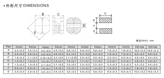 風華高科的PIO貼片功率電感,一直備受市場好評,主要原因是PIO功率電感可以完全替換國內市場上常用的CD系列功率電感,其實說替換也不對,因為兩者規格尺寸相同,而PIO功率電感也是國內產品,CD系列功率電感在國內應用非常廣泛,主要因為其高品質高Q值,耐大電流。非屏蔽鐵氧體磁芯構造,成本較低。產品無鉛等特點,而PIO功率電感其實也就是CD系列功率電感,但是畢竟出自風華高科,PIO貼片功率電感相比于外面的CD功率電感,至少質量上售后上都有保證的,PIO功率電感常用尺寸一般就是PIO54,PIO43,PIO75等,其實PIO功率電感和CD系列一樣:比如PIO54等同于CD54,就是直徑X高度,例如5表示直徑為5mm,4表示高度為4mm。老規矩,南山半導體繼續為大家分享PIO功率電感的規格書,方便大家了解規格,選型參考: