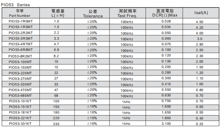 所以說,在選擇功率電感時,盡量選擇國內(nèi)有實力的廠商,下面給大家看下風(fēng)華高科的CD53功率電感相關(guān)型號規(guī)格,供大家參考選型: