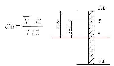 表示制程特性中心位置的偏 移程度,值等于零,即不偏移。值越大偏移越大,越小偏移越小。Ca 在衡量“實際平均值與規格中心值一致性;對于單邊規格,不存在規格中心,因此也就不存在Ca;對于雙邊規格如圖1