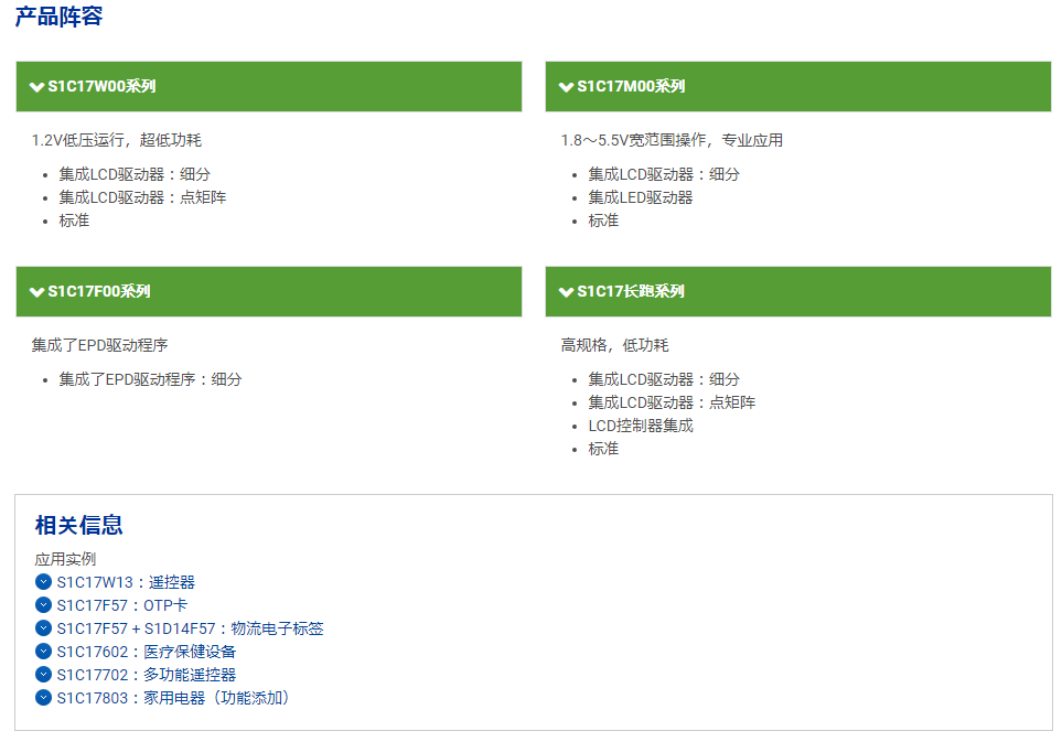 愛普生MCU具有高性能和低功耗的特點,廣泛應用在移動設備,智能卡,物流設備,醫療設備,家用電器等方面,下面